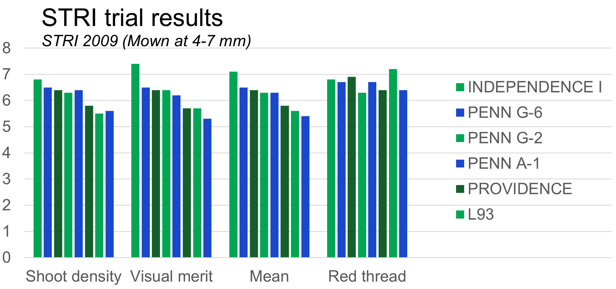 INDEPENDENCE 1 creeping bentgrass is a completely new, cutting edge creeping bentgrass. It ranks with the new elite bentgrasses and delivers higher overall turf quality than the old standards.