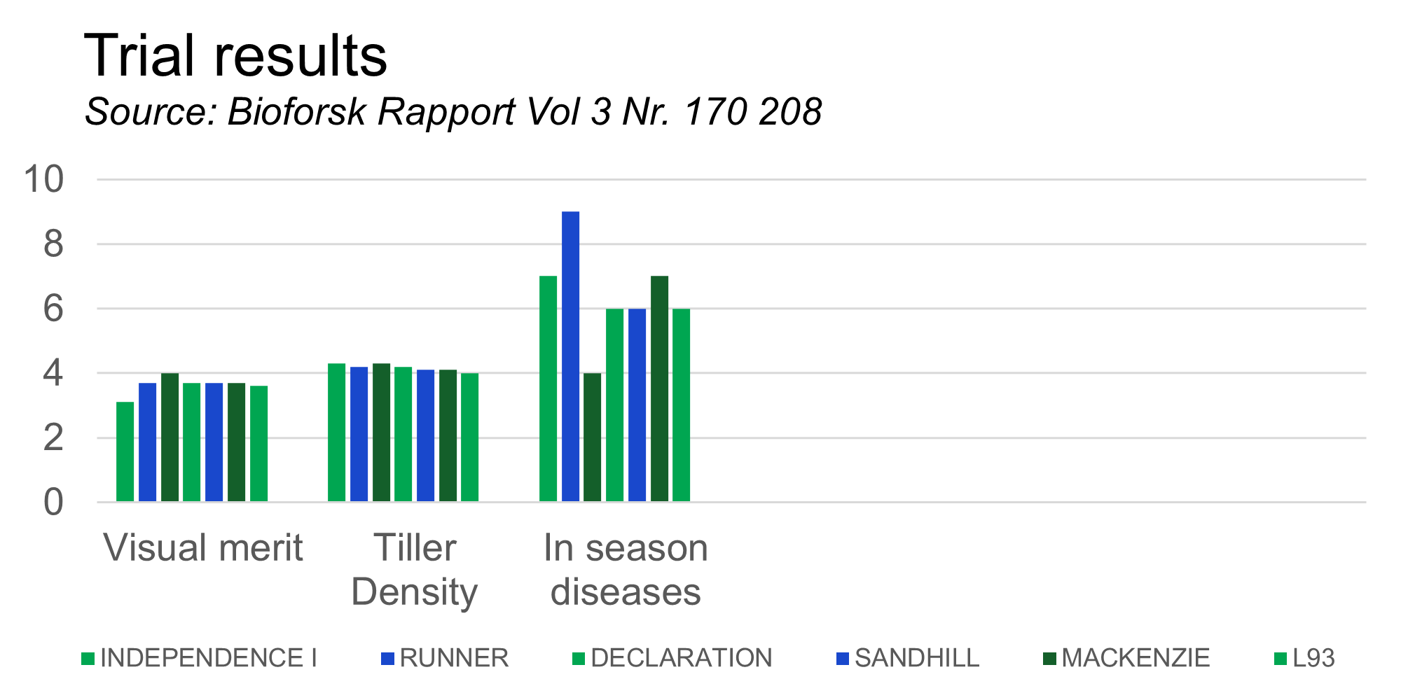 INDEPENDENCE 1 was especially bred for the low mowing heights of golf course greens, but as it has very flexible mowing heights it can also be used for bowling greens, golf tees, fairways, croquet lawns and tennis courts.