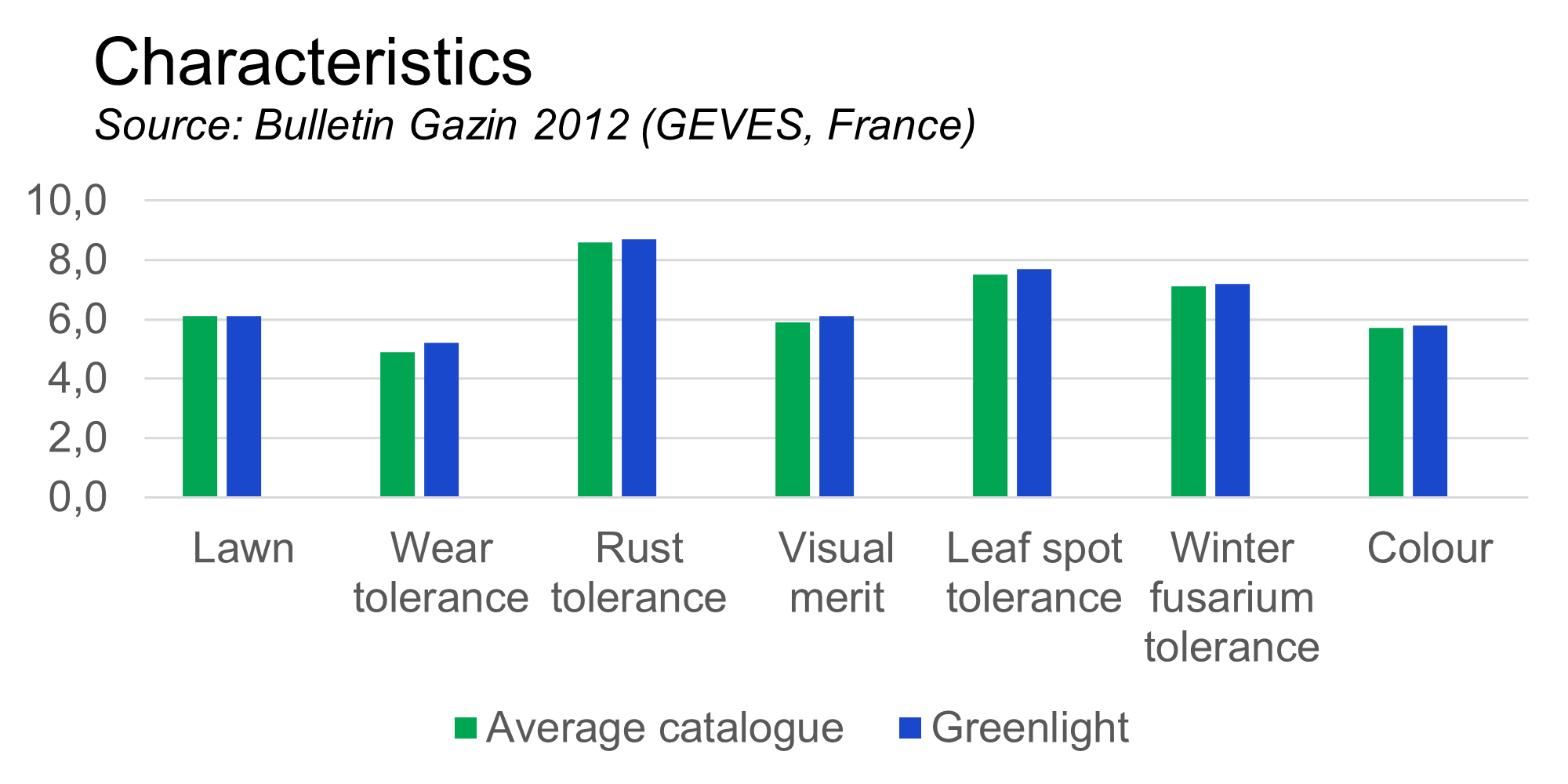 The strong point of slender creeping red fescues is the good summer visual merit. Greenlight confirms this and is even well above average.