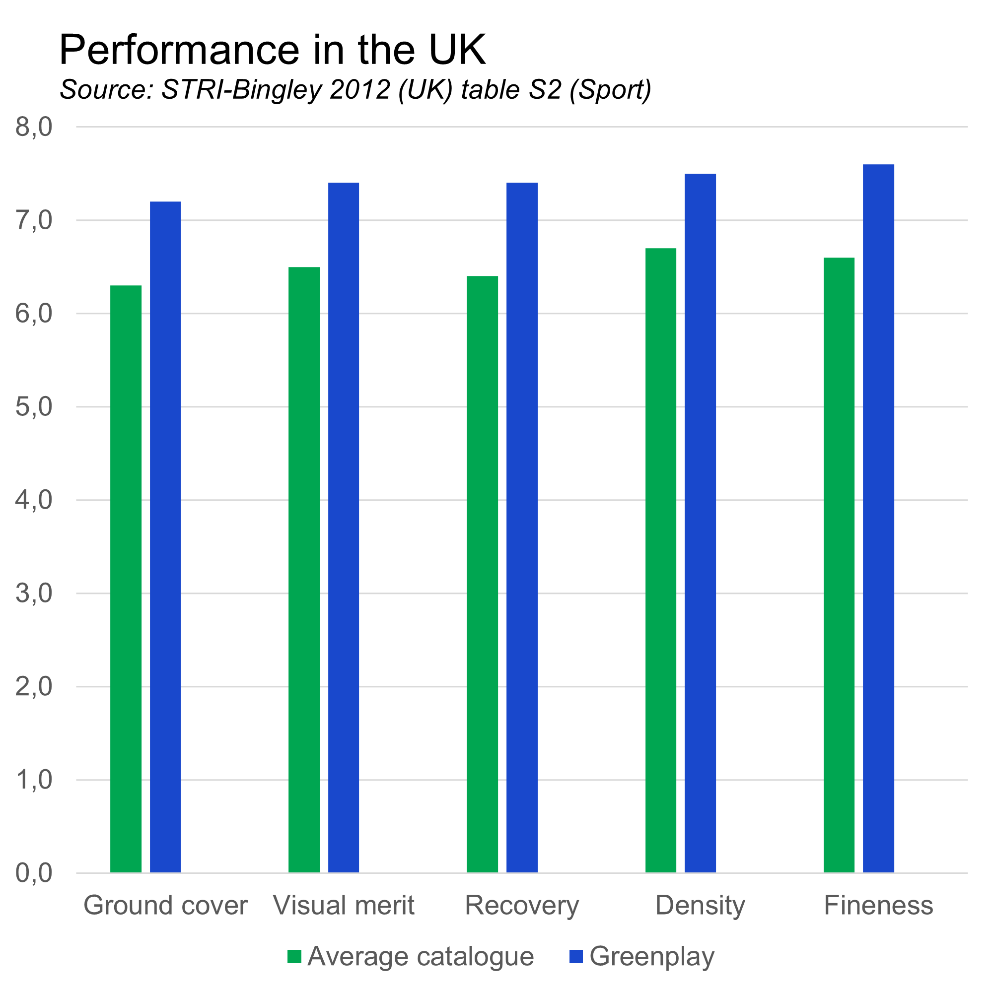 GREENPLAY will fit into most sport field mixtures where wear tolerance is of utmost importance. Several options are possible: Mixtures with perennial ryegrass for normal conditions and with tall fescue for the more hot and dry regions. Where high winter hardiness is required, a blend of two or three Smooth Stalked Meadow Grasses is recommended.