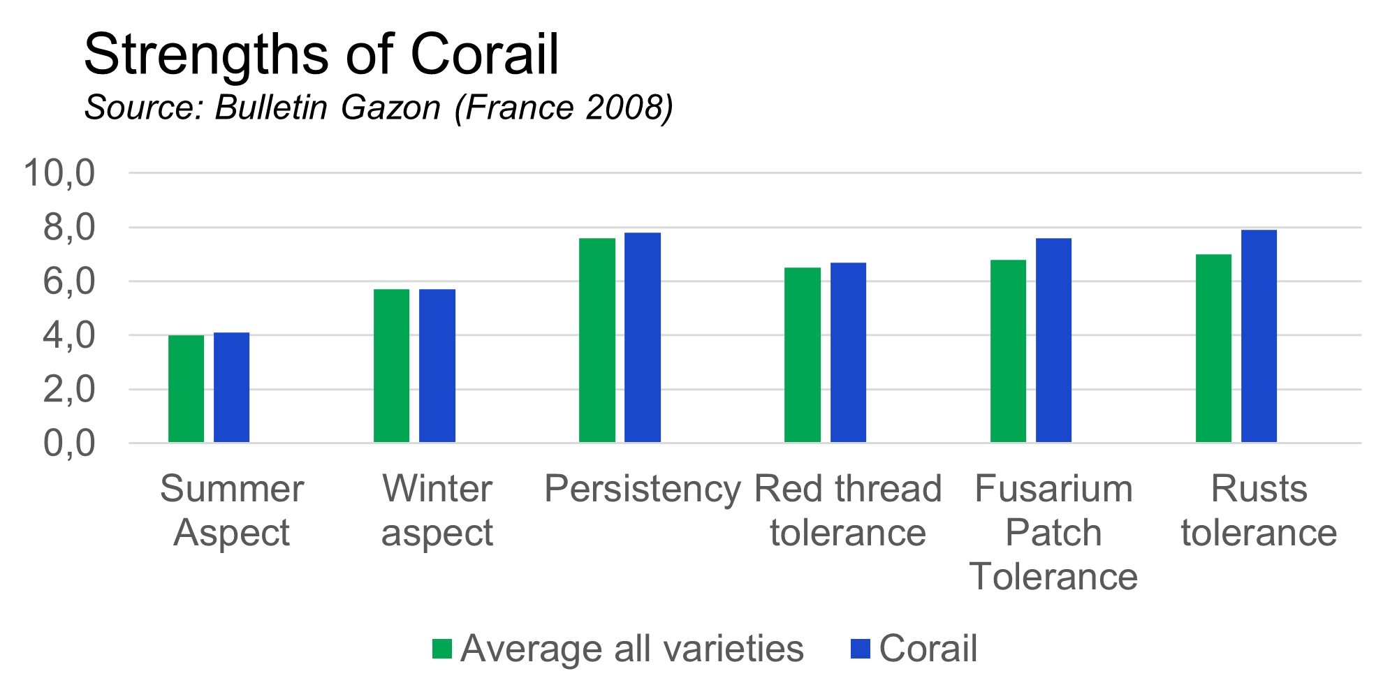 Corail is easy to establish and will contribute to the persistency of the grass cover due to excellent longivity and rhizome development.